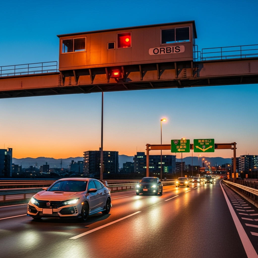 オービスは走行中の車を自動で検知し、速度超過があれば撮影して違反を証拠として残す装置です。